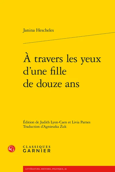 - Résumé : Sauvée en 1943 du camp Janowski à Lvov, Janina Hescheles, douze ans, rédige à chaud ses souvenirs, qui paraissent en Pologne en 1946 sous le titre À travers les yeux d’une fille de douze ans. Ils sont ici traduits en français avec des fragments inédits du manuscrit et augmenté d’un appareil critique.