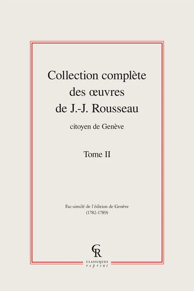 - Cet ouvrage fait également partie d’un lot composé de plusieurs volumes. Voir Collection complète des œuvres de J.-J. Rousseau, Citoyen de Genève
