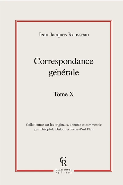 - Résumé : Cet ensemble rassemble la Correspondance générale de Jean-Jacques Rousseau, dans une édition de de Pierre-Paul Plan et Théophile Dufour.