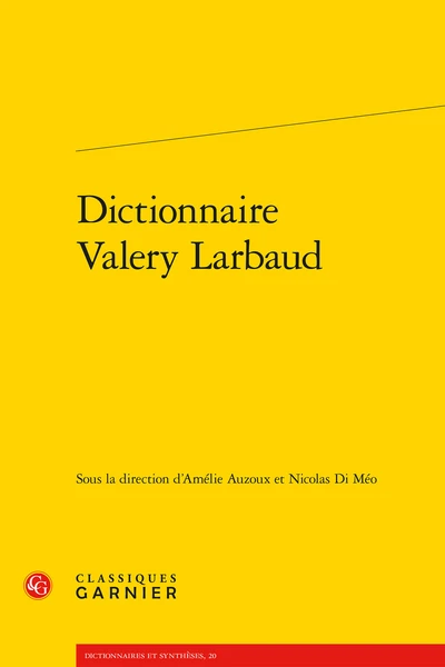 - Résumé : Composé de 208 notices, le Dictionnaire Valery Larbaud étudie l’œuvre de l’écrivain dans ses différents aspects (esthétique, thématique, politique…) tout en brossant un panorama du champ littéraire de la première moitié du xxe siècle à travers l’examen des échanges et des débats qui le structuraient.