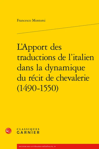 - Résumé : Cet ouvrage aborde le devenir de la littérature chevaleresque et les échanges littéraires entre France et Italie de 1490 à 1550, à travers une analyse contextuelle et l’étude de quatre grands textes : Guérin Mesquin, Morgant le géant, Roland amoureux et Roland furieux.