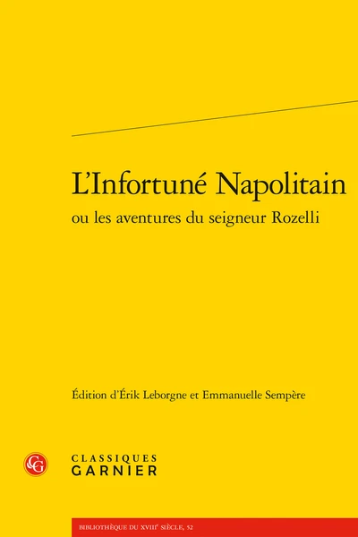 - Résumé : Réédité tout au long du xviiie siècle, L’Infortuné Napolitain retrace sous forme de mémoires apocryphes les aventures d’un personnage historique connu sous le nom du Signor Rozelli. Cet illustre malheureux, tourmenté par ses passions, devient séminariste, esclave, philosophe, cabaliste et magicien.