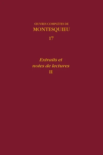 Directeur d’ouvrage : Minuti (Rolando) - Résumé : Les notes marginales laissées par Montesquieu et les extraits, parfois très développés, d’ouvrages constituant sa « bibliothèque manuscrite » étaient pour la plupart inédits. Ils constituent un point d’accès essentiel à son œuvre, tout en révélant sa méthode de travail et la genèse de sa pensée.
