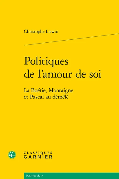 - Résumé : Ce livre éclaire le mouvement d’intrication et de désintrication des écritures de La Boétie, Montaigne et Pascal, à l’aune de leurs interprétations contraires du dérèglement de l’amour de soi. Ce démêlé détermine des différences essentielles et mal connues entre leurs pensées politiques.
