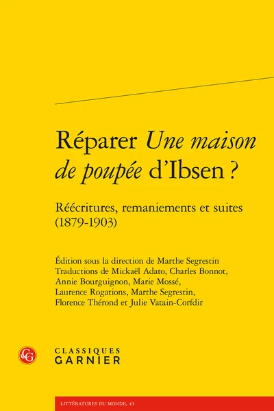 - Résumé : Le scandale esthétique et moral suscité à la fin du xixe siècle par Une maison de poupée a inspiré de multiples réécritures, remaniements et suites, ici réunis, illustrant sur un mode sérieux, parodique ou polémique, les réponses des contemporains à cette question : peut-on, et faut-il, réparer la pièce d’Ibsen ?