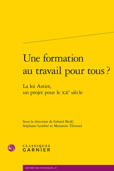 - Résumé : La loi Astier du 25 juillet 1919 définit l’enseignement technique et impose une obligation de formation aux jeunes filles et garçons de moins de 18 ans employés dans le commerce et l’industrie. Son élaboration et ses effets sont parties prenantes des mondes de la formation et du travail au xxe siècle.